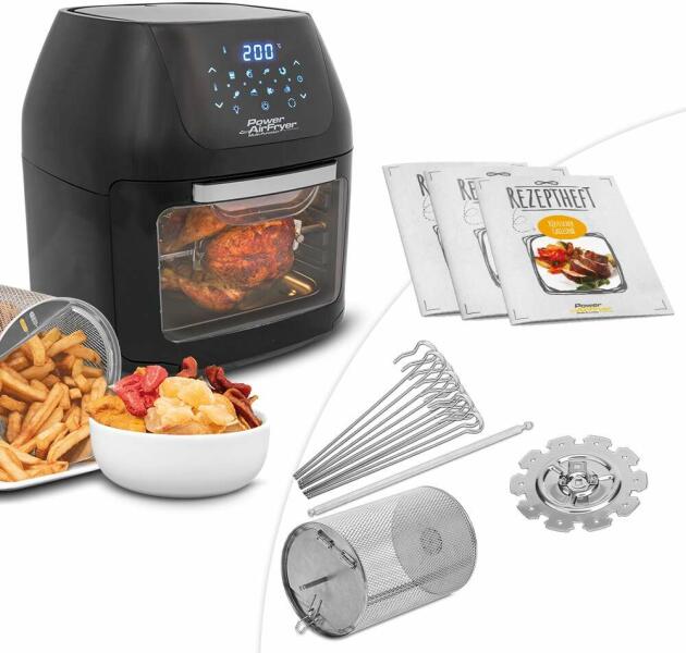Szeretne egészségesen és változatosan étkezni, de a rengeteg edénytől és géptől már nem lehet elférni a konyhájában, pedig nem is használjak őket? Ennek mától vége! Megérkezett a Power AirFryer Multifunction - ez a 9 az 1-ben konyhai csodagép helyettesíti a fritőzt, a grillsütőt, a sütőt, az aszalót, a mikrosütőt, és még sok mindent! A Power AirFryer Multifunction a világon elsőként kombinálja az olajnélküli fritőzt, a grillsütőt és az aszaló gépet! 9 az 1-ben konyhai csodagép Olaj nélküli fritőz, aszal, grillez, húst és tésztát süt, gratiníroz, pirít, melegít és párol! Ebben a csodagépben 1800 Wattnyi szupererő lakozik! A modern Air Flow forrólevegős technológiának köszönhetően az ételek egy időben 3 tálon készülhetnek, a hagyományos módszerekhez képest 80%-kal kevesebb zsiradékkal. Easy Touch Display és 8 különböző program Easy Touch Display és 8 beépített program A kifinomult Easy Touch Display lehetővé teszi, hogy Ön egyetlen gombnyomással főzzön! Válasszon a 8 előre megadott program közül! A gépben beépített forgó-grill funkció is található. Élvezze a korábbinál szaftosabb és omlósabb grillcsirkét, vagy süssön kolbászt mostantól hozzáadott zsír és olaj nélkül! Beépített aszaló funkcióval A beépített aszaló funkcióval végre Ön is készíthet otthon aszalt gyümölcsöket, mindezt természetesen, zsír és hozzáadott cukor nélkül! A Power AirFryer Multifunction-t praktikus kiegészítőkkel szállítjuk. Minden alkatrész mosogatógépben tisztítható. A sült krumpli többé nem úszik az egészségtelen olajban, mert végre itt van a Power AirFryer Multifunction! Töltse le az ínycsiklandó recepteket egy kattintással!