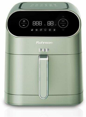 Forrólevegős fritőz 1800 W teljesítménnyel és 7 liter űrtartalmú kivehető tartállyal. A Rohnson R-2859G Green – 7L nagy LED-es digitális érintőképernyővel, 6 előre beállított automatikus programmal, 80–200°C között állítható hőmérséklettel és 60 perces időzítővel rendelkezik. A tartozékok mosogatógépben moshatók.
