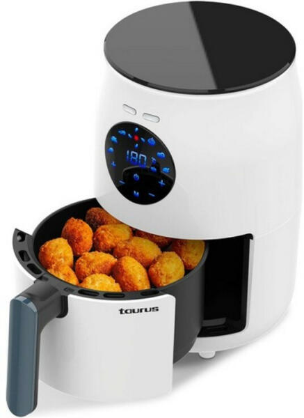 Air Fryer 1000W, 1,5L AF Respire Taurus. A Respire a Taurus legkompaktabb olajmentes légsütője. 1,5 literes űrtartalma és vékony kialakítása ideálissá teszi kis konyhákba, egyéni vagy páros használatra.