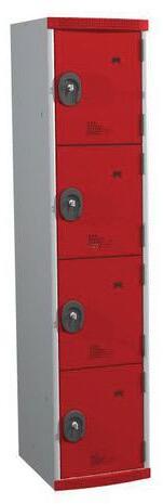 Rekeszes szekrények négy külön zárható rekesszel. Acéllemezből készülnek, vast. 0,6 mm. A szellőzésről az ajtók perforációja gondoskodik. Az ajtók 120°-ban nyithatók. Névtábla helyezhető el az ajtókon. Minden rekesz hengerzárral zárható (2-2 kulccsal minden zárhoz).