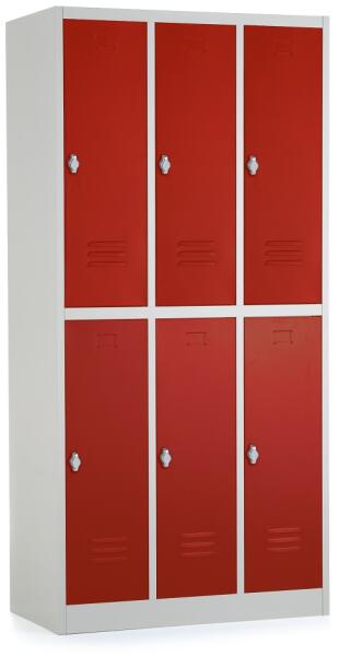 Rauman Fém szekrény - 6 doboz, 90 x 45 x 180 cm, csavaros zár, piros - ral 3000