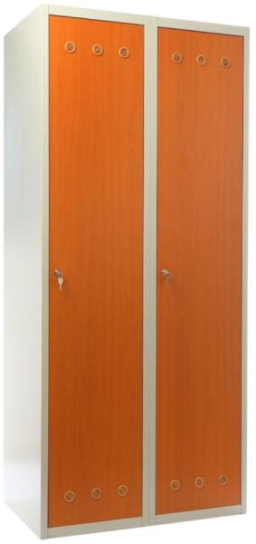 Rauman Fém szekrény fa ajtókkal, 80 x 50 x 180 cm, hengerzáras, cseresznye