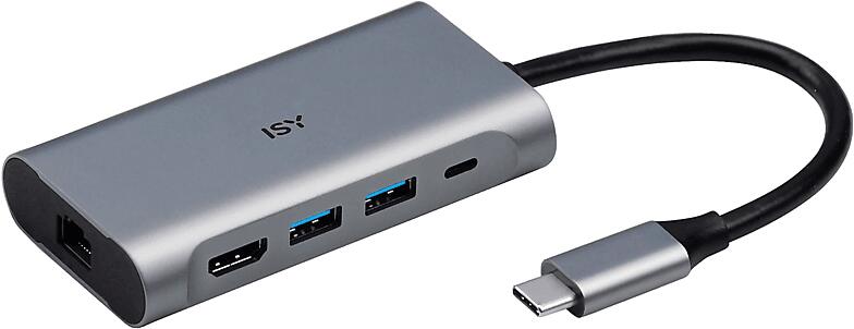 ISY IAD-1022-1 USB 3.1 Type-C Multiport adapter, 1x 4K HDMI, 2xUSB-A, LAN, 1xUSB-C (2V225517), szürke (IAD-1022-1)