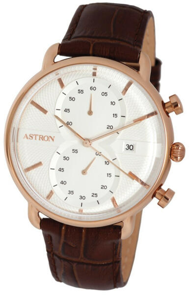 ASTRON 5532-0 férfi karóra, multifunkciós, rózsaarany színű nemesacél tok, barna bőrszíj, fehér számlap, keményített ásványüveg, quartz szerkezet, 50 m (5 ATM) vízállóság (5532-0)