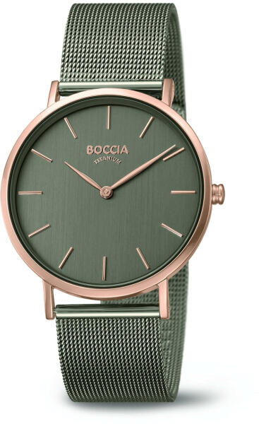 Márka: BOCCIA TITANIUM | Modell: 3273-08 | Garancia: 2 évek | Szín: szürke | Tok színe: rózsaarany | Tok anyaga: titán | Táplálás: elem | Szíj anyaga: nemesacél | Vízálloság: 30M/3ATM | Üveg: ásványi | Forma: kerek | Csatolás típusa: mesh típusú felcsatolás | Számjegyek a számlapon: indexek | Rendeltetés: női | Minimális kerület: 15 | Termék típusa: karórák | Típus: analóg | Maximális kerület: 21 | Szíj szélessége: 18 mm | Átmérő: 36 mm | Vastagság: 6 mm