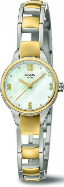 Márka: BOCCIA TITANIUM | Modell: 3277-02 | Garancia: 2 évek | Szín: ezüst | Szín: arany | Tok színe: bicolor árnyalat | Tok anyaga: titán | Táplálás: elem | Szíj anyaga: titán | Vízálloság: 30M/3ATM | Üveg: ásványi | Forma: kerek | Csatolás típusa: zsanérzár | Számjegyek a számlapon: arab | Számjegyek a számlapon: indexek | Rendeltetés: női | Minimális kerület: 14 | Termék típusa: karórák | Típus: analóg | Maximális kerület: 19 | Szíj szélessége: 10 mm | Átmérő: 22 mm | Vastagság: 6 mm
