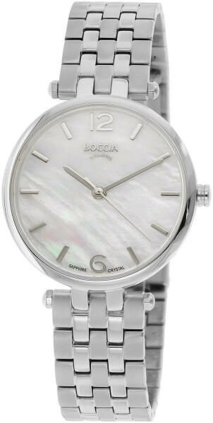 Márka: BOCCIA TITANIUM | Modell: 3339-01 | Garancia: 2 évek | Szín: gyöngyház | Szín: ezüst | Tok színe: ezüst árnyalat | Tok anyaga: titán | Táplálás: elem | Szíj anyaga: titán | Vízálloság: 50M/5ATM | Üveg: zafír | Forma: kerek | Számjegyek a számlapon: arab | Számjegyek a számlapon: indexek | Rendeltetés: női | Termék típusa: karórák | Típus: analóg | Szíj szélessége: 14 | Átmérő: 30 | Vastagság: 7