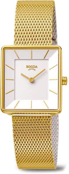 A négyzet alakú női Boccia Titanium karóra felkelti a figyelmet a viszonylag kicsi méretével és kiváló minőségű kivitelezésével. A titán óratokban fehér számlap díszeleg, amely apró óramutatókkal és indexekkel van felszerelve.