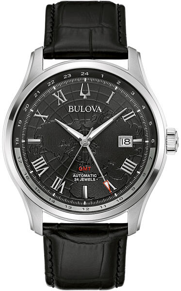 Gyártói szám: 96B387Gyártói sorozat: Wilton GMT automata 43mmFunkciók: Dátum, GMT, Óra, Perc, MásodpercÓramű: AutomataSzámlap színe: FeketeKijelző: AnalógVízállóság: 3Lünetta: FixFelületkezelés: Mattított, PolírozottTok színe: EzüstTok anyaga: Rozsdamentes acélTok vastagsága: 13Tok formája: KerekTok szélessége: 43Hátlap: Üvegbetétes, csavarozottNem: FérfiÜveg: tükröződésmentes, zafírüvegVilágítás: Világító mutatókStílus: KlasszikusSzíj anyaga: BorjúbőrSzíj színe: FeketeSzíj szélessége: 22Csat: Csattos zárMax csukló kerülete: 220Termék súlya: 0.10Szállítás tartalma: Doboz, Használati utasítás, Csomagolás, Garancia dokumentum
