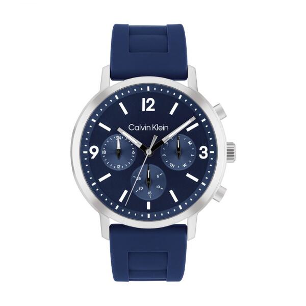 Calvin Klein Gauge férfi karóra 25200460. Aképen láthatóCalvin Kleinférfi karóra tok anyaga nemesacél, színe ezüst, a szíj anyaga szilikon és a színe kék. A z óratok átmérője 44mm, alakja kerek. Akaróra üvege kristály (nehezen karcolható), szerkezete kvarc és vízállósága 3 atm (30m) (cseppmentes). A z óra hibátlan állapotban, gyári dobozával együtt kerül csomagolásra.