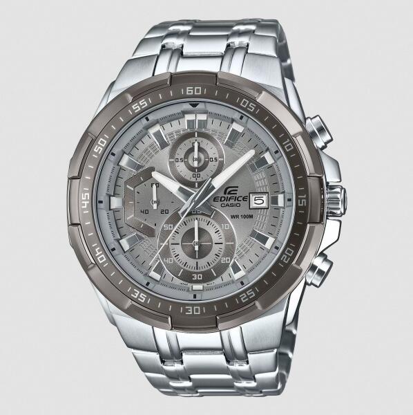 Casio EFR-539DE-8AVUEF Férfi Karóra – Edifice ChronographA Casio EFR-539DE-8AVUEF egy nagy méretű, sportos férfi karóra, amely erőt és dinamizmust sugároz. A karakteres, szürke ionbevonatú lünetta , a rétegzett számlap kialakítás és a rozsdamentes acél szíj együttesen prémium megjelenést biztosítanak. Ideális választás mindennapi viseletre és különleges alkalmakra is. Főbb jellemzők
