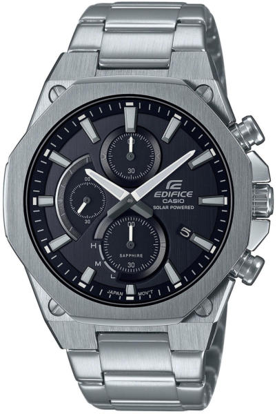 Márka: CASIO | Kollekció: EDIFICE | Modell: EFS-S570D-1AUEF | Szín: fekete | Szín: ezüst | Tok színe: ezüst árnyalat | Tok anyaga: nemesacél | Táplálás: napelemes (Tough solar) | Szíj anyaga: nemesacél | Funkciók: Dátum – a hónap napja | Funkciók: Az elem állapotának indikátora | Funkciók: Neo-kijelző | Funkciók: Stopper 1/1 másodperc - 60 perc | Vízálloság: 100M/10ATM | Üveg: zafír | Forma: kerek | Csatolás típusa: zsanérzár | Számjegyek a számlapon: indexek | Rendeltetés: férfi | Minimális kerület: 16 | Termék típusa: karórák | Típus: analóg | Maximális kerület: 22,5 | Szíj szélessége: 22-18 | Átmérő: 44 | Vastagság: 9,7