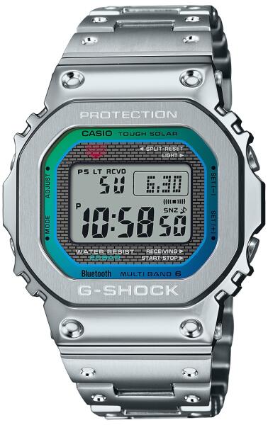 Casio GMW-B5000PC-1 Férfi Karóra - G-SHOCKA Casio GMW-B5000PC-1 férfi karóra a G-SHOCK ikonikus, első DW-5000 modelljének formáját követi, ünnepelve a márka 40. évfordulóját. A szivárvány színeit idéző, teljes fémből készült időmérő stílust és funkcionalitást kínál. A karóra 200 méter vízállóságot, Bluetooth kapcsolatot és rádióvezérelt időbeállítást biztosít, miközben a Tough Solar technológia gondoskodik a hosszú üzemidőről. Főbb Jellemzők