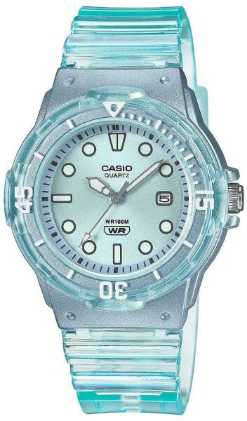 Casio LRW-200HS-2EVEF Női Karóra - BasicA Casio LRW-200HS-2EVEF női karóra egy elegáns és kompakt analóg időmérő, áttetsző dizájnnal. A tengerészeti inspirációk és a fényes, fémesen csillogó számlap találkozása egy kifinomult, ugyanakkor modern külsőt kölcsönöz az órának. A 10 bar vízállóság, a dátumkijelző és a könnyű, gyantából készült tok és szíj teszi tökéletes választássá mindennapi viseletre. Főbb Jellemzők
