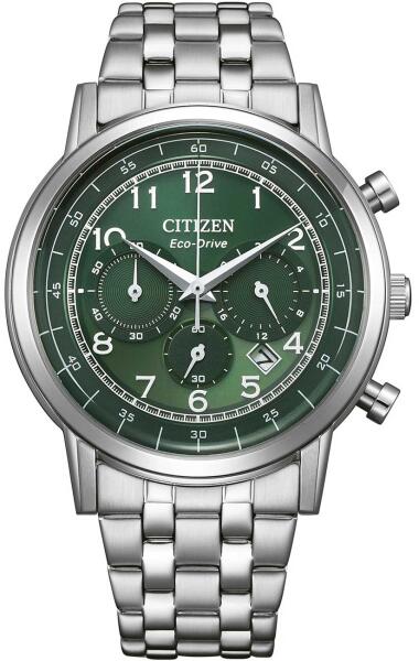 Citizen CA4630-53X Férfi Karóra – Sportos Elegancia Eco-Drive KronográffalA Citizen CA4630-53X férfi karóra stílusos megjelenésével és funkcionális kronográf kialakításával ideális választás azoknak, akik a megbízhatóságot és a modern dizájnt keresik egyben. A zöld számlap és az ezüstszínű acél szíj egyedi megjelenést biztosít. A Citizen Eco-Drive technológia fényenergiát alakít át mozgásra, így nincs szükség elemcserére. A B620 kaliberű kronográf szerkezet precíz időmérést és akár 270 napos járástartalékot kínál. Főbb jellemzők – Citizen CA4630-53X Chronograph