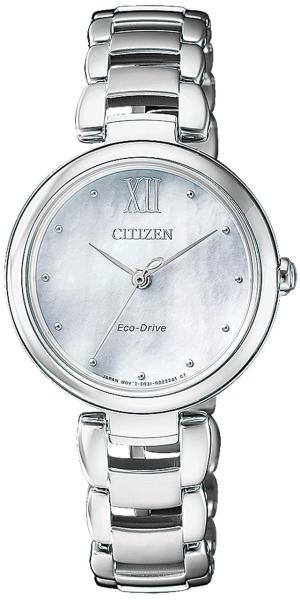 Szíj szín: Ezüst | Szerkezet: Eco-Drive | Óratok anyaga: Nemesacél | Szíj: Fémszíj | Üveg: Zafír üveg | Vízállóság: 50 m (zuhanyzásra, úszásra alkalmas, vízi sportokra nem használható) | Óratok szélesség: 30 mm | Óratok hosszúság: 29 mm | Óratok vastagság: 8 mm | Óratok színe: Ezüst | Díszítés: Gyöngyház számlap (EM0530-81D)