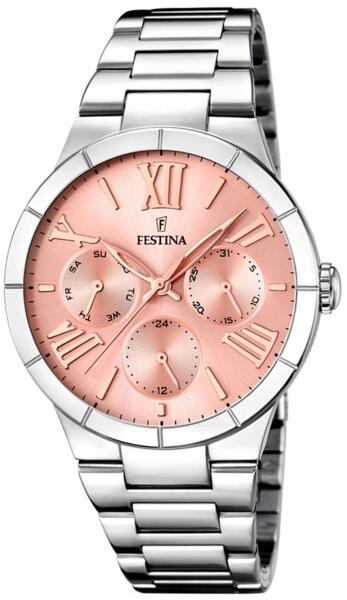 A Festina Boyfriend kollekció a modern nők számára készült, akik szeretik ötvözni a férfias és nőies stíluselemeket a divatban. Ez a kollekció merész és stílusos megjelenésével tűnik ki, amely az oversize, vagyis a nagyobb méretű órák iránti trendet követi. A Boyfriend órák tökéletesen egyensúlyoznak a robusztus dizájn és a nőies részletek között, így különleges, egyedi kiegészítővé válnak minden nő számára. Az órák nagyobb számlappal és vastagabb szíjakkal rendelkeznek, amelyek markáns megjelenést biztosítanak, ugyanakkor a részletekre való odafigyelés – mint például a gyöngyház számlapok, csillogó kövek és finom színárnyalatok – megtartják az eleganciát és nőiességet. A Festina ezen kollekciója ideális választás azoknak a nőknek, akik szeretnék kiemelni egyedi stílusukat, és egy figyelemfelkeltő, mégis kifinomult kiegészítőt keresnek. A Festina Boyfriend kollekció nemcsak divatos, hanem praktikus is, hiszen a vízállóság és a karcálló üveg biztosítja, hogy ezek az órák megbízhatóan kísérjék viselőjüket a mindennapokban. Ha egy olyan órára vágyik, amely egyszerre trendi és elegáns, a Festina Boyfriend a tökéletes választás.