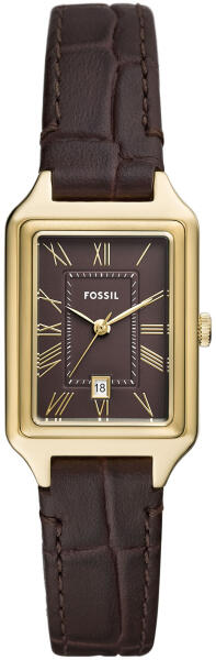 A Fossil Raquel női karóra ES5367 karóra házának anyaga nemesacél, színe arany, a szíjának anyaga bőr és a színe barna. Az óratok átmérője 23 mm, alakja négyszögű. A karóra üvege kristály (nehezen karcolható), szerkezete kvarc és vízállósága 5 atm (50m) (erősen cseppálló).