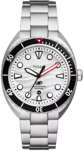 Fossil Breaker férfi karóra típusa FS6063. Bemutatjuk legújabb és legtehetősebb búvár-stílusú karóránkat, amely fehér texturált számlappal, 20 ATM-es vízállósággal és modern esztétikai elemekkel rendelkezik, amelyek a nyílt vízen való kalandot közvetítik. Bemutatjuk legújabb és legtehetősebb merülési stílusú karóránkat, amely robusztus 20 ATM-es vízállósággal rendelkezik – az eddigi legmélyebb. A búváróra kialakításának jellegzetessége, a geometriai fénymutatók tökéletes olvashatóságot biztosítanak gyenge fényviszonyok között. Az üveg, egy irányban forgó előlap gazdag, karcálló színt kínál.