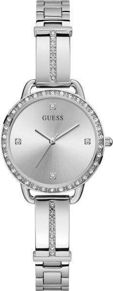 Női Guess GW0022L1 óra ezüst színben. A kijelző egyszerű és világos.