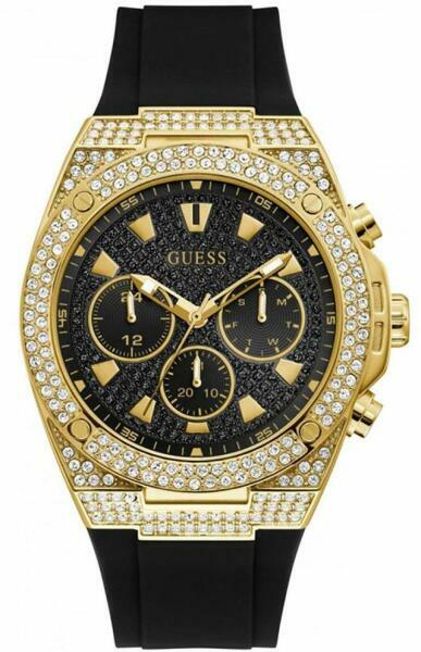 Márka: GUESS | Modell: GW0060G2 | Szín: fekete | Tok színe: arany árnyalat | Tok anyaga: nemesacél | Táplálás: elem | Szíj anyaga: műanyag | Funkciók: 24-órás számlap | Funkciók: Dátum – a hónap napja | Funkciók: Dátum – a hét napja | Funkciók: SWAROVSKI kristályokkal | Vízálloság: 50M/5ATM | Üveg: ásványi | Forma: kerek | Csatolás típusa: standard felcsatolás | Számjegyek a számlapon: indexek | Rendeltetés: férfi | Minimális kerület: 16 | Termék típusa: karórák | Típus: analóg | Maximális kerület: 21 | Szíj szélessége: 28-22 | Átmérő: 45 | Vastagság: 11