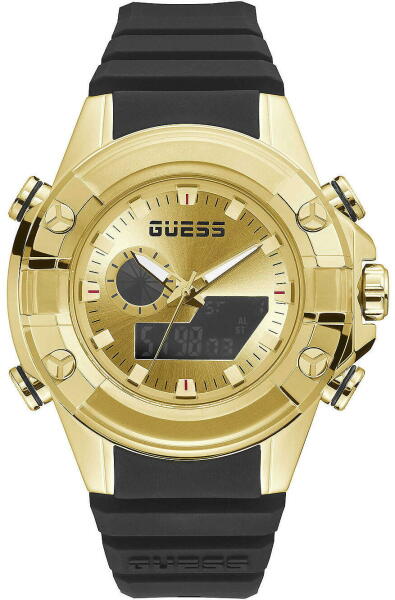 Ha előnyben részesíti az olyan órákat, amelyek kombinálják az analóg és digitális idő ábrázolását, akkor megszereti a kedvelt Guess márka műhelyéből származó G Force-t. Arany számlapjuk jellegzetes mutatóival és indexeivel hívja fel magára a figyelmet.