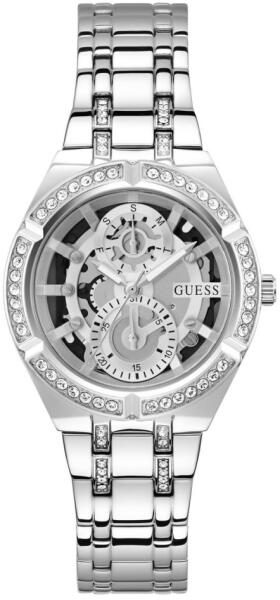 gyártó: Guess ModellNr : GW0604L1 ehemalige Listaár:*: 219,00 Euro számlap: analóg, szín: silberfarben / átlátszó Ház: Rozsdam entes acél tokezüst, előlap köves kirakott