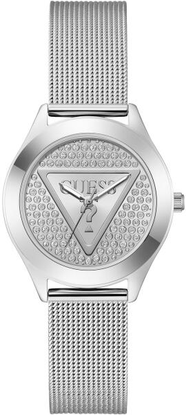 Guess Glitz Plaque női karóra GW0835L1. A Guess Glitz Plaque GW0835L1 női karóra egy egyedi modell, amely a klasszikus stílust modern kivitelezéssel ötvözi. Ezüstszínű, rozsdamentes acélból készült, 34 mm széles borítással rendelkezik, amely finom, mégis jellegzetes karaktert kölcsönöz neki. Az ezüstszínű számlapot ásványi üveg borítja, ami tovább fokozza az óra eleganciáját. A karperec szintén ezüstszínű hálós anyagból készült, amely tökéletesen harmonizál az általános dizájnnal. Az óra vízállósága 30 méterig terjed, így praktikus a mindennapi viselethez. Tökéletes választás azoknak a nőknek, akik stílusos és funkcionális kiegészítőt keresnek a ruhatárukhoz.