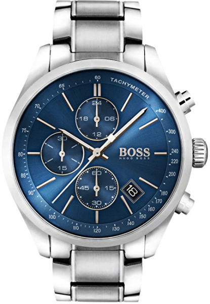 Hugo Boss karórák a Grand Prix kollekcióból. Ideális kiegészítők férfiaknak , akik előnyben részesítik az analóg és kerek alakú karórákat. A belül ellenálló 11 mm magas tokban, melyet minőségi acél alkot , megbízható elemes (quartz) gépezetet talál, mely 44 mm átmérőjű számlapot működtet. A számlapot ellenálló ásványi üveg véd. A tok szürke, számlap kék és a szíj ezüst színű. Anyagát tekintve acél. A karórák v ízállósága < strong> 3 ATM .   Használati utasítás csak angol nyelven van