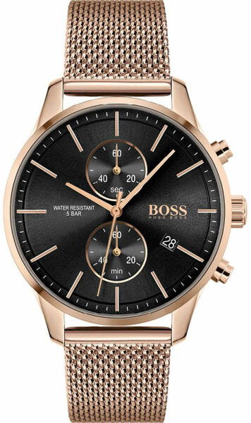 Márka: HUGO BOSS | Modell: 1513806 | Garancia: 2 évek | Szín: rózsaarany | Tok színe: rózsaarany | Tok anyaga: nemesacél | Táplálás: elem | Szíj anyaga: nemesacél | Funkciók: Dátum – a hónap napja | Funkciók: Stopper 1/1 másodperc - 60 perc | Vízálloság: 50M/5ATM | Üveg: ásványi | Forma: kerek | Csatolás típusa: mesh típusú felcsatolás | Számjegyek a számlapon: indexek | Rendeltetés: férfi | Minimális kerület: 16 | Termék típusa: karórák | Típus: analóg | Maximális kerület: 21 | Szíj szélessége: 20-18 | Átmérő: 42 | Vastagság: 10