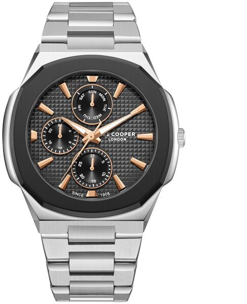 Férfi karóraElemről működikTokrátmérő: 45,0 mmKerek tokFém tokEzüst színű tokFém szíjEzüst színű szíjMutatós számlapFekete számlapTizenkét indexű számlapÜveg anyaga - ásványi üvegVízálló mindennapi viselés esetén