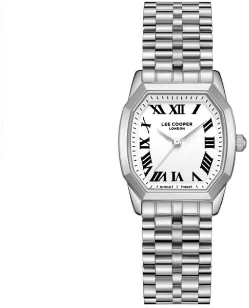 Női karóraElemről működikTok átmérője 27,0 mmNyolcszögletű formájú tokFém tokEzüst színű tokFém szíjEzüst színű szíjMutatós számlapFehér színű számlapRómai számokkal ellátott számlapÜveg anyaga - ásványi üvegVízálló a mindennapi használat során