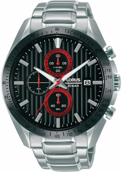 Márka: LORUS | Modell: RM303HX9 | Garancia: 2 évek | Szín: fekete | Szín: ezüst | Tok színe: ezüst árnyalat | Tok anyaga: nemesacél | Táplálás: elem | Szíj anyaga: nemesacél | Funkciók: Dátum – a hónap napja | Funkciók: Stopper 1/10 másodperc - 60 perc | Vízálloság: 100M/10ATM | Üveg: ásványi | Forma: kerek | Csatolás típusa: zsanérzár | Számjegyek a számlapon: indexek | Rendeltetés: férfi | Minimális kerület: 16 | Termék típusa: karórák | Típus: analóg | Maximális kerület: 22,5 | Szíj szélessége: 22-20 | Átmérő: 45 | Vastagság: 12