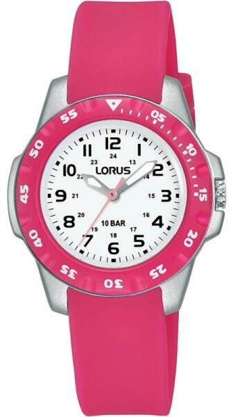 A Lorus RRX59HX9 gyermekóra garantáltan örömet szerez a kis showgirlnek. A műanyag tok és az üveg elég tartós és hosszú élettartamú. Az óra lunettája masszív és percmutatós. A fehér kijelző könnyen olvasható számlapot biztosít arab számokkal. Ezzel a Lorus óra modellel a gyermek bemehet a vízbe - 100 méterig (úszás) vízálló. A szilikon szíj kellemesen sima tapintású, így az óra egész nap kényelmes viseletet biztosít. Klasszikus csattal rögzítik.