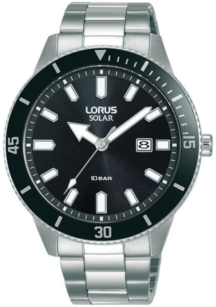 Márka: LORUS | Modell: RX311AX9 | Garancia: 2 évek | Szín: fekete | Szín: ezüst | Tok színe: ezüst árnyalat | Tok anyaga: nemesacél | Táplálás: napelemes | Szíj anyaga: nemesacél | Funkciók: Dátum – a hónap napja | Vízálloság: 100M/10ATM | Üveg: ásványi | Forma: kerek | Csatolás típusa: zsanérzár | Számjegyek a számlapon: indexek | Rendeltetés: férfi | Termék típusa: karórák | Típus: analóg | Átmérő: 43 | Vastagság: 11,1