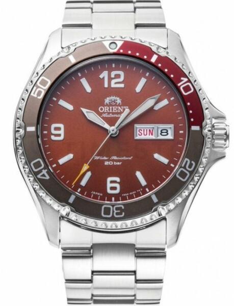 A hihetetlenül népszerű Orient Mako sorozat negyedik generációja. A kollekció dizájnvilága követi, a már jól bevált búvár vonalat, mérete közel 42 mm. A számlap bordó színe és a sötétbarna-bordó kombinációjú lünetta, a sárga végű másodperc mutatóval egyedi megjelenést sugároz. A nemesacél óratok matt, szál polírozott. A fluoreszkáló rakott indexek és mutatók gyors leolvashatóságot biztosítanak. Menetes hátlapja, valamint menetes koronája révén 200 méterig vízálló. Zafírkristály üvege ellenáll a mindennapi igénybevételnek. Szerkezete az Orient saját, koronával is felhúzható, "In House" automata kalibere, 40 óra járástartalékkal.