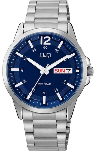 Q&Q férfi karóra, ezüst színű fémtok, ezüst színű nemesacél csat, kék számlap, A36A-003PY (4208-9)