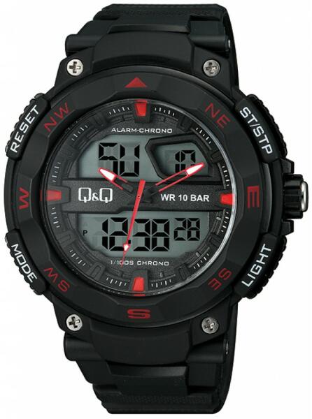 Q&Q férfi karóra, quartz, digitális, LCD kijelzés, chronograph, fekete színű műanyag tok, fekete színű műanyag szíj, GW85J006Y (4097-9)