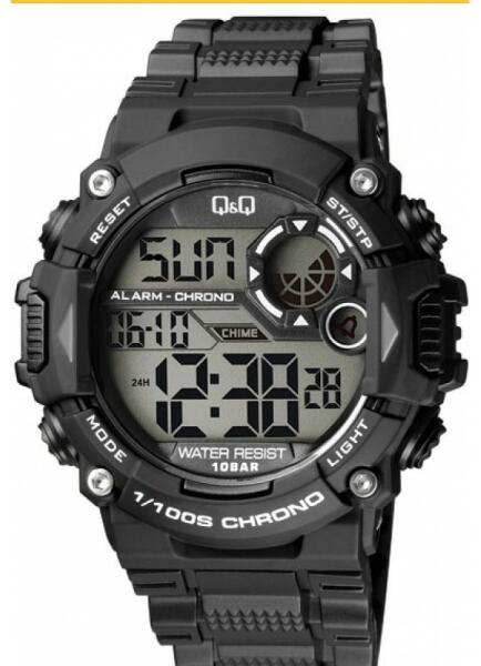Q&Q férfi karóra, quartz, LCD, fekete színű műanyag tok, fekete színű műanyag szíj, fekete színű számlap, chronograph, M146J001Y (4091-3)