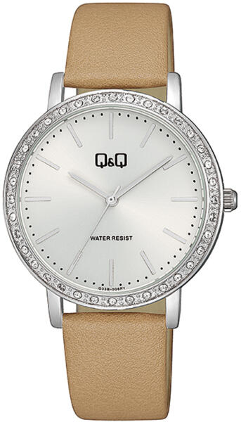 Q&Q női karóra, quartz, ezüst színű fémtok, ezüst színű számlap, barna színű bőrszíj, Q33B-006PY (4094-1)