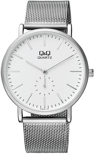 Q&Q férfi karóra, ezüst színű tok, ezüst színű karcsat (mesh band), fehér számlap, QA96J201Y (4038-1)