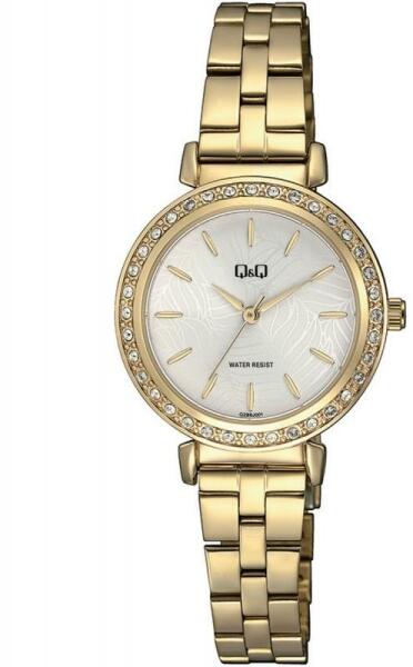 Q&Q női karóra, quartz, arany színű fémtok, arany színű nemesacél csat, ezüst színű számlap, QZ89J001Y (4211-6)