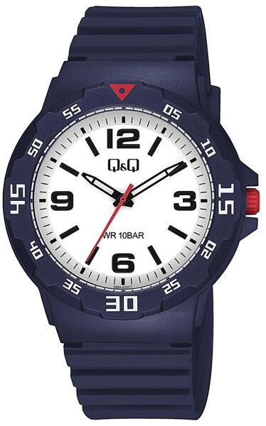 Q&Q férfi karóra, quartz, kék színű műanyag tok, fehér színű számlap, kék színű műanyag szíj, V02A-019VY (4080-7)