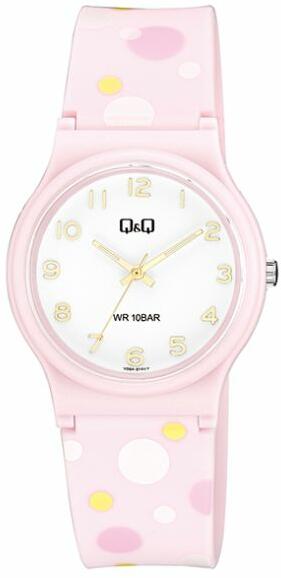 Q&Q női karóra, rózsaszín műanyag tok, rózsaszín műanyag szíj, fehér számlap, V06A-014VY (4207-2)