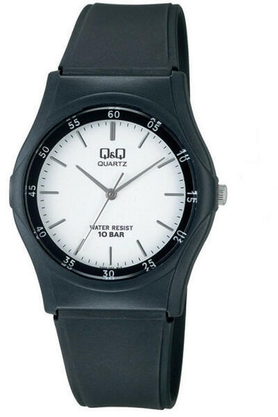 Q&Q unisex műanyag karóra, quartz, fekete színű tok és szíj, fehér színű számlap, műanyag hátlap, VQ04J002Y (4024-6)
