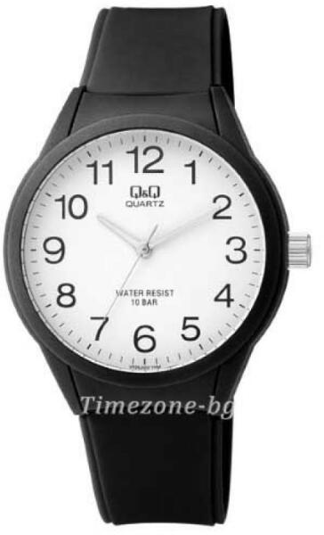 Q&Q férfi műanyag karóra, quartz, fekete színű műanyag tok, fekete színű műanyag szíj, fehér számlap, VR28J002Y (4154-8)
