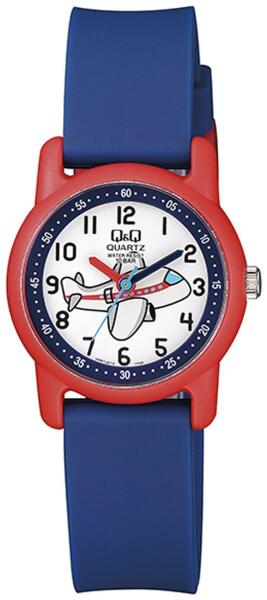 Q&Q gyerek karóra, quartz, piros színű műanyag tok, kék színű műanyag szíj, repülős számlap, VR41J010Y (4183-6)