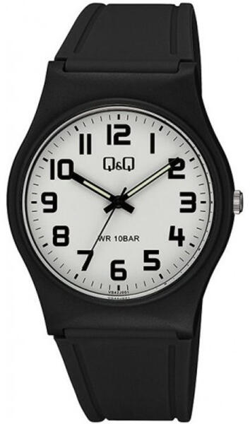 Q&Q férfi karóra, quartz, fekete színű műanyag tok, fekete színű műanyag szíj, fehér színű számlap, VS42J001Y (4076-7)