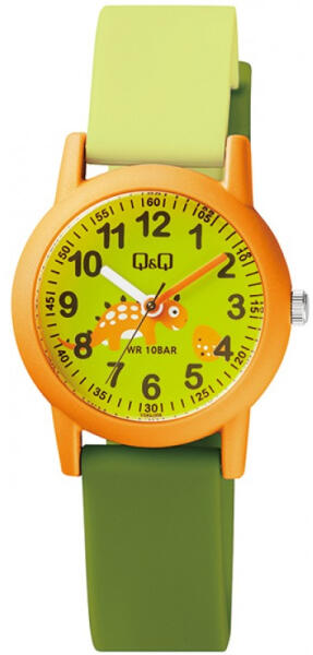Q&Q gyerek karóra, narancssárga műanyag tok, zöld szíj, figurás számlap, VS49J008Y (4212-5)