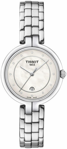 Tissot Flamingo női karóra T094.210. 11.116. 01 egy kerek formájú, ezüst színű nemesacél óratokkal, gyöngyház analóg számlappal és ezüst nemesacél szíjjal rendelkező elegáns Tissot karóra. Az óra elemmel működő kvarc szerkezettel és 5 ATM vízállósággal rendelkezik, tehát mérsékelten vízálló. Ez a fantasztikus óra most 169900 áron megrendelhető webshopunkban, melyre 24 hónap garanciát adunk és gyári díszdobozban szállítjuk. Ne feledd, hogy 20 ezer Ft feletti rendelésedet 2 nap alatt ingyen házhoz visszük, vagy átveheted bármelyik BL Óraszalonban is.